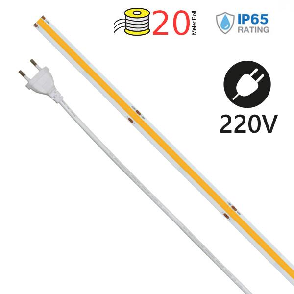 STRISCIA LED 2835 COB CALDA 20 METRI IMPERMEABILE 220V