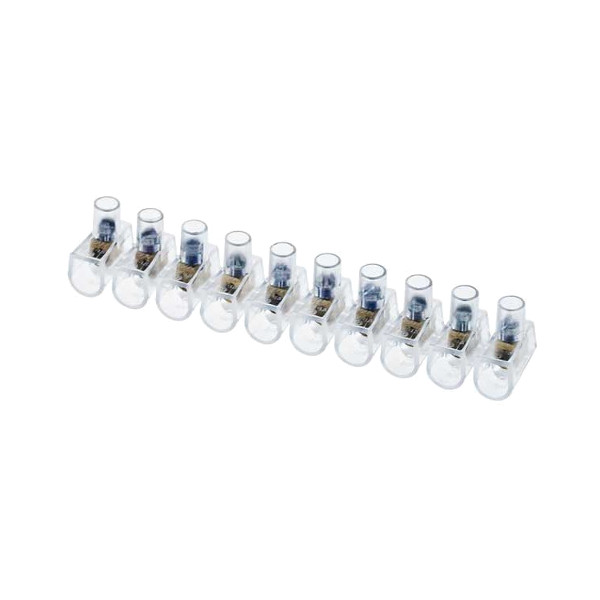 Morsetto con foro 6mm a vite con cappuccio trasparente in stecca da 10 pezzi.