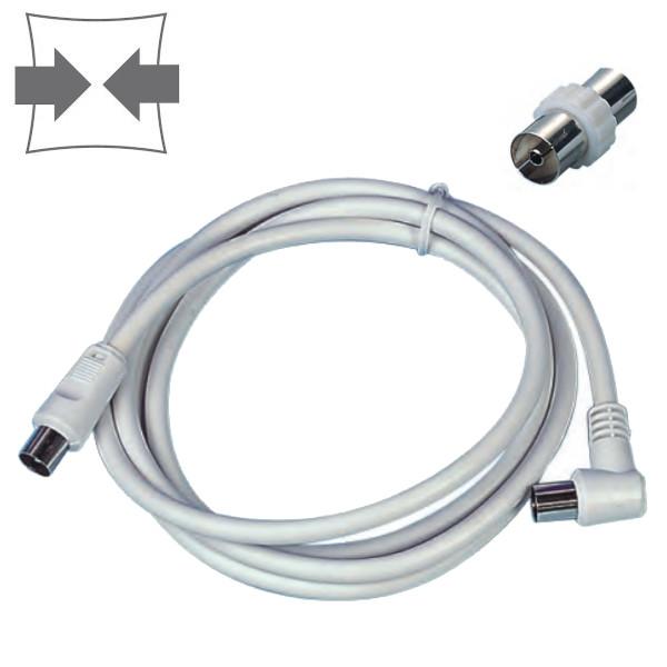 Prolunga per antenna TV da 3 metri con SPINA e PRESA 90° di colore bianco con adattatore in confezione Polybag