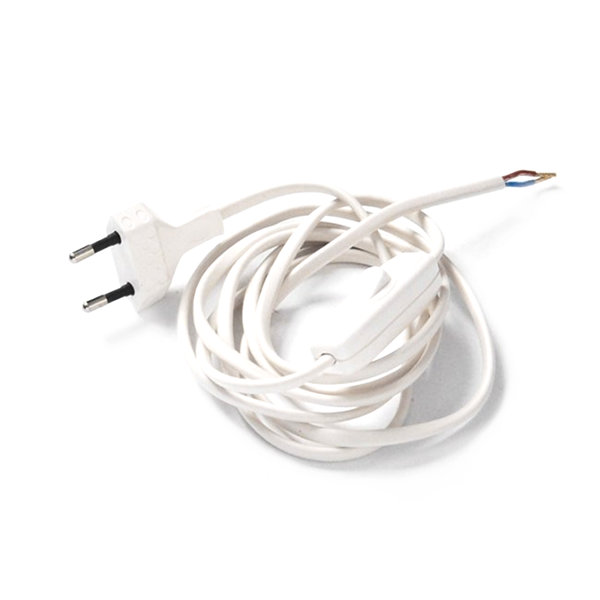 Cablaggio alimentazione 2X0,75 spina 10A con interruttore passafilo BIANCO lungo 2 metri.