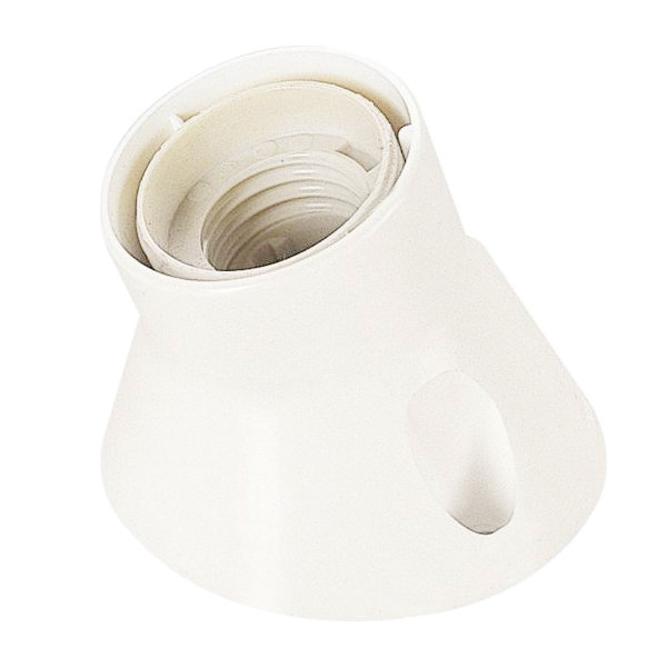 Portalampada E27 Base termoplastica curva di colore bianco lucido.