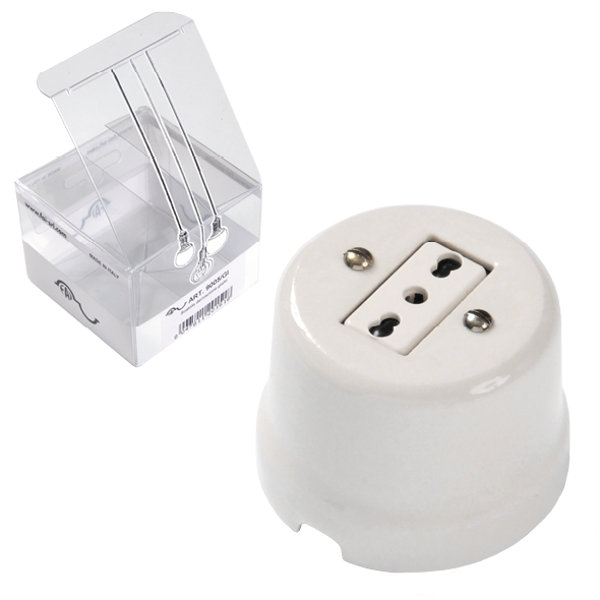 PRESA 2P+T 10-16A BIVALENTE ITALIANA IN PORCELLANA BIANCA