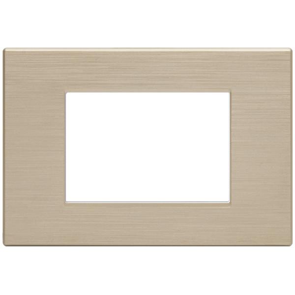 PLACCA TECNOPOLIMERI GEM CHAMPAGNE SPAZZOLATO 3 POSTI COMPATIBILE PLANA