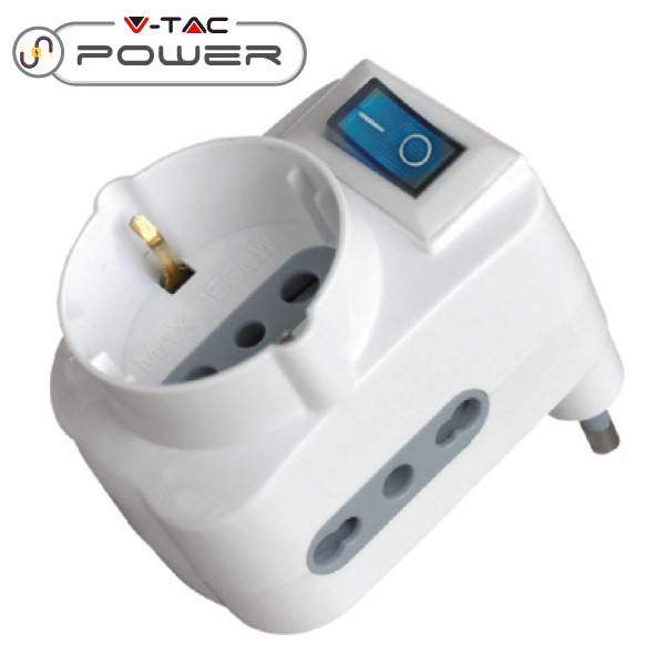Adattatore multiplo 2 prese BIPASSO,1 presa SCHUKO con spina 16A