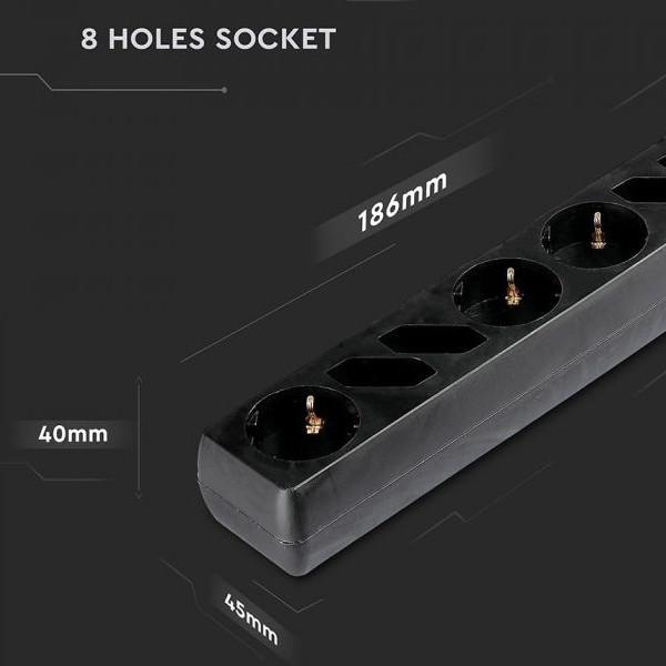 MULTIPRESA CON 8 PRESE E INTERRUTTORE LUMINIOSO CON SPINA SCHUKO NERO