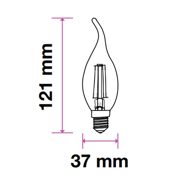 Lampadina con attacco E14 a Filamento LED, potenza 4W a 230V bianco naturale a fiamma ad ALTO RENDIMENTO.