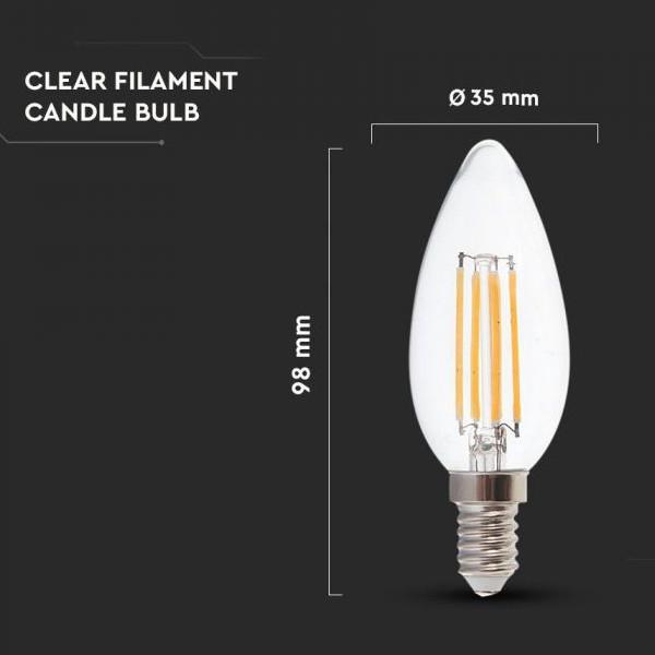 V-TAC VT-2327 LAMPADINA FILAMENTO LED CANDELA E14 6W BIANCO CALDO IP20 LED212848 0