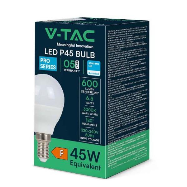 LAMPADINA LED P45 E14 6.5W BIANCO CALDO A BULBO CHIP SAMSUNG