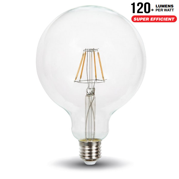 V-TAC VT-287 LAMPADINA LED E27 GLOBO G125 6W FILAMENTO CALDA SAMSUNG LED292 0