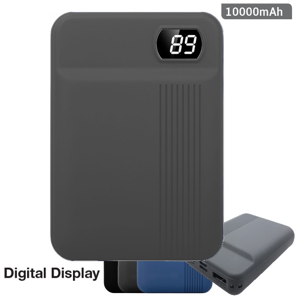 PowerBank per ricarica cellulari da 10000mAh con 2 uscite USB di colore Grigio con DISPLAY digitale.