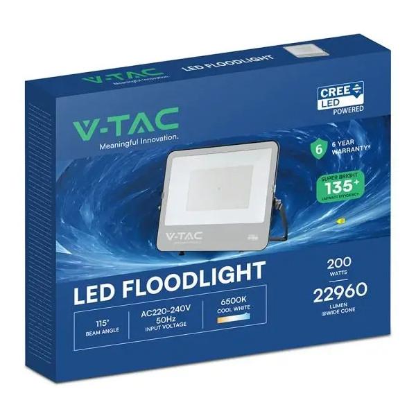 V-TAC VT-44201 FARO LED SLIM NERO 200W BIANCO FREDDO CHIP CREE 135LM/W IP65 CAVO 1 MT LED232216 0
