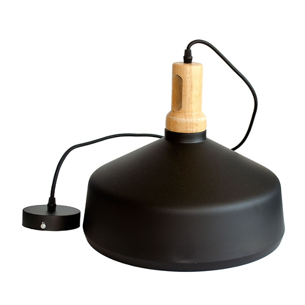 PORTALAMPADA E27 PENDENTE LEGNO NERO D350
