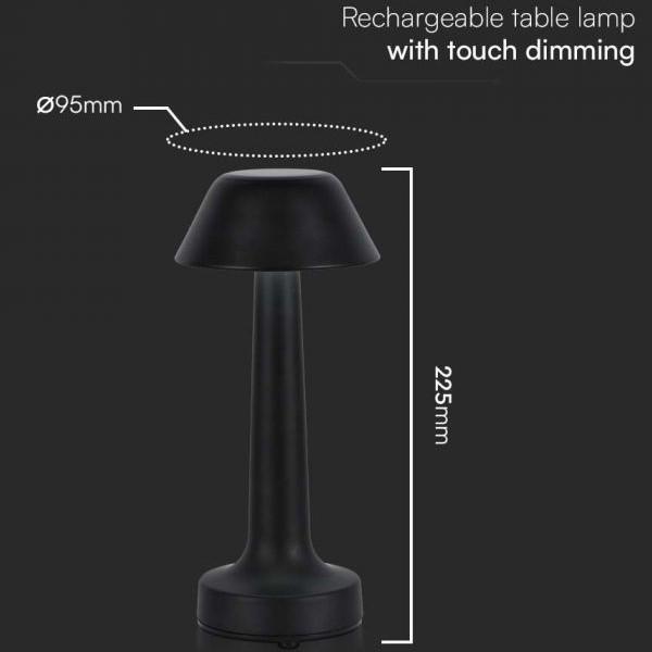 LAMPADA DA TAVOLO LED 1W RICARICABILE LUCE 3IN1 FINITURA NERA