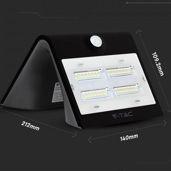 LAMPADA LED 3W SOLARE LUCE COMBINATA SENSORE PIR DI MOVIMENTO IP65 NERO