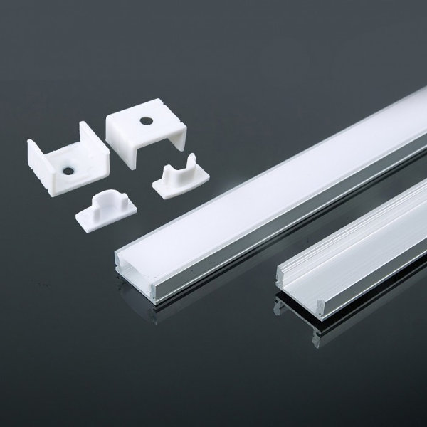 Profilo di alluminio lineare con copertura opaca lungo 2MT per l'inserimento di una striscia LED.