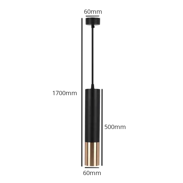 PORTALAMPADA GU10 PENDENTE NERO+ORO 60X500MM